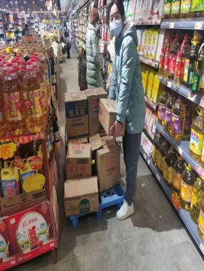 活动开展第四天,团队成员在家乡河南省周口市太康县常营镇上的一个超市开展了疫情期间超市营业状况调查的实践活动。团队成员首先通过超市工作人员了解近期营业情况,得知因疫情影响,营业额严重下降。团队成员尽自己微薄之力帮助超市工作人员进行搬运和整理货物,缓解他们的焦虑情绪。最后与顾客交谈引导他们做好自身防护,共同维护家乡疫情防控工作。通过此次志愿服务活动,团队成员明白作为一名当代老员工,应积极投身于社会志愿服务工作,努力提高社会责任感。