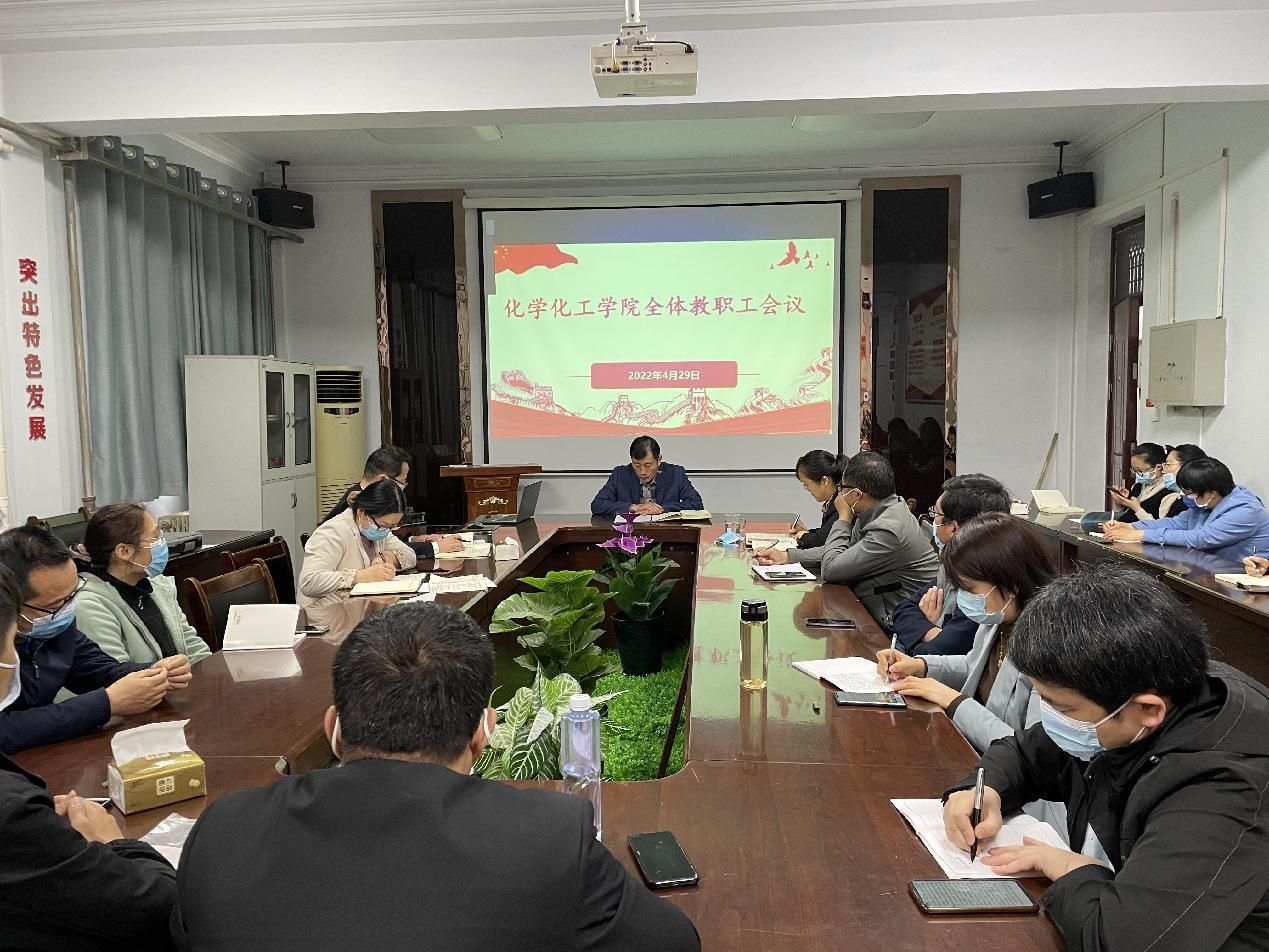 4月29日下午,E8官网登录入口通过线上线下相结合的方式举行全体教职工会议,会议由党委书记李海涛主持。