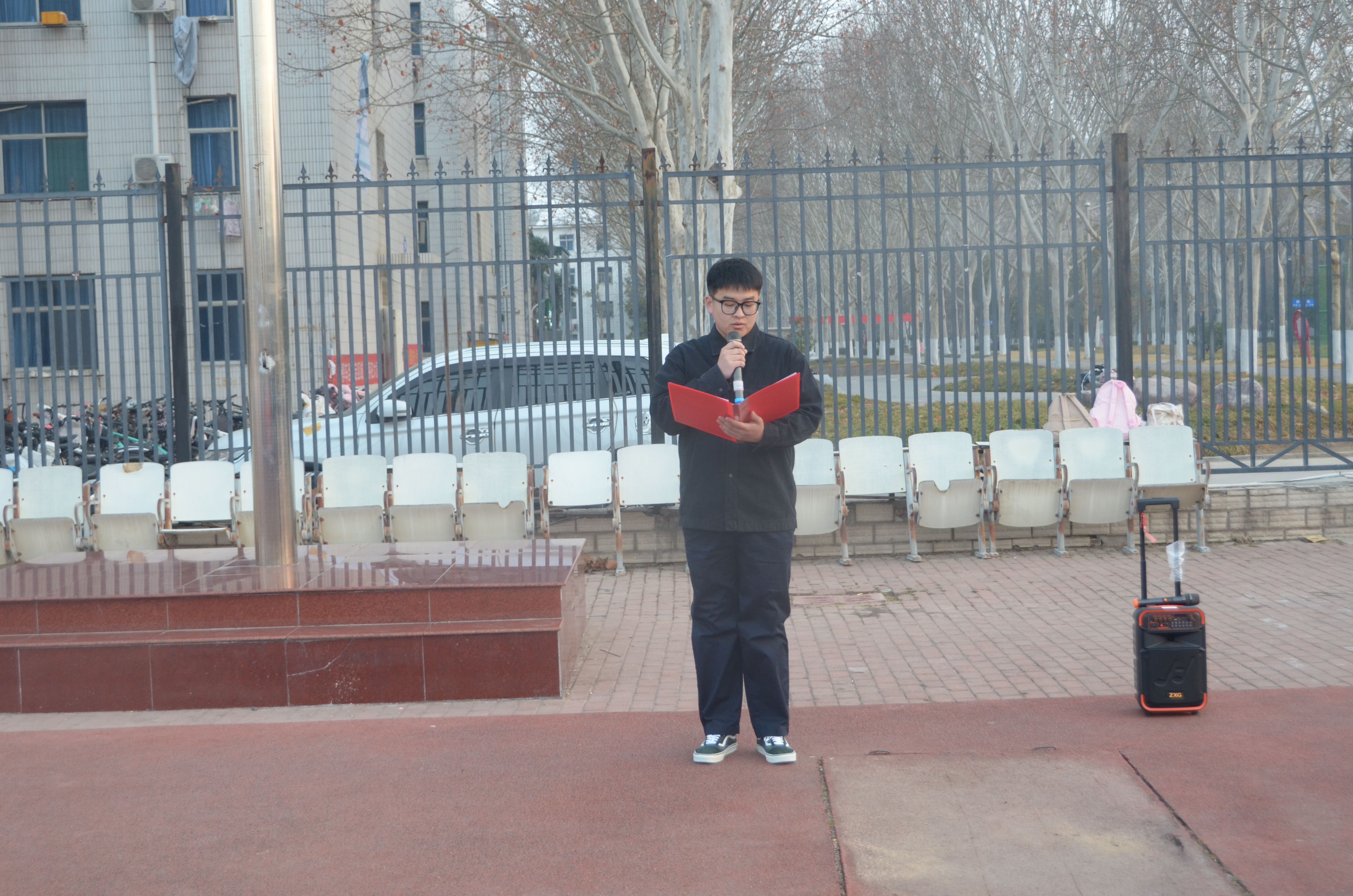 仪式在庄严的国歌声中拉开帷幕。公司公寓管理委员会负责人丁帅兵同学以“安全卫生,共筑健康宿舍”为主题进行宣讲。