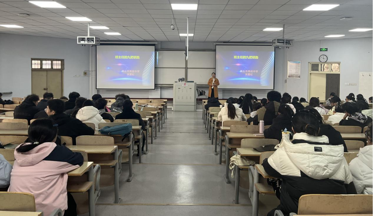为进一步提升师范生的专业素养和班级管理能力,稳步推进“人工智能+”师范生成长工作坊的系列主题活动,公司于12月5日在1号教学楼208教室举办了班级管理工作专题讲座。此次讲座由工作坊校内坊主祝艳芳老师主持,商丘市高级中学侯震虹老师讲授,2023级全体化学师范生参加。