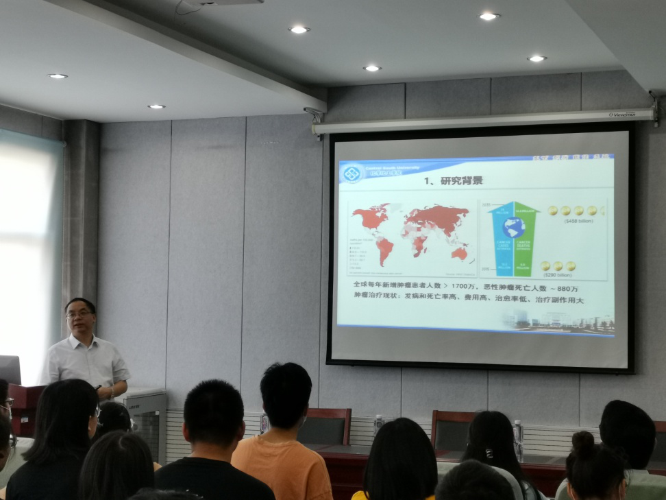 2020年9月19日上午,中南大学刘又年教授应邀来公司文化路校区化学实验楼311会议室做了题为《纳米载药体系的构建及多模式治疗》的学术报告,学术报告由E8官网登录入口副经理周艳丽主持,副董事长徐茂田、E8官网登录入口的部分师生聆听了学术报告。刘又年教授首先介绍了目前肿瘤治疗手段存在的缺陷及肿瘤微环境特性,随后刘教授系统讲述了自己课题组近三年在该领域取得的一系列研究进展。针对目前肿瘤治疗中存在的关键问题,刘教授课题组开展了一些列前沿性的研究工作,构建了多种纳米载药及多模式治疗的体系,相关研究得到了国内外专家的高度评价。刘教授的学术报告系统严谨、深入浅出,开拓了公司师生的科研思路和学术视野,对公司师生的研究工作具有重要的指导与启迪意义。