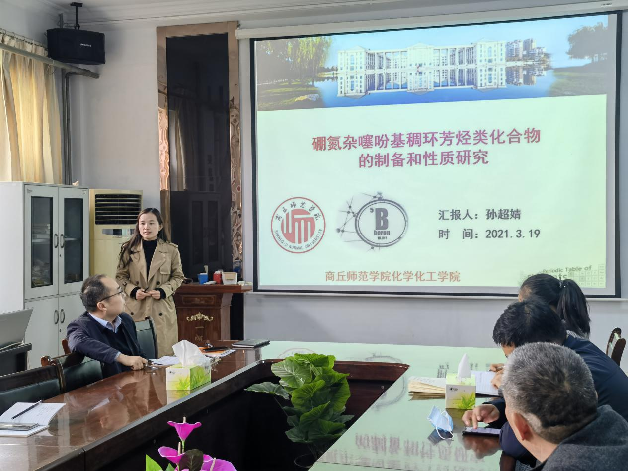 2021年3月19日下午,E8官网登录入口进行了本学期第二期博士论坛。青年教师孙超婧博士在文化路校区7号楼E8官网登录入口一楼会议室做了题为《硼氮杂噻吩基稠环芳烃类化合物的制备和性质研究》的学术报告。E8官网登录入口全体教师参加了论坛。