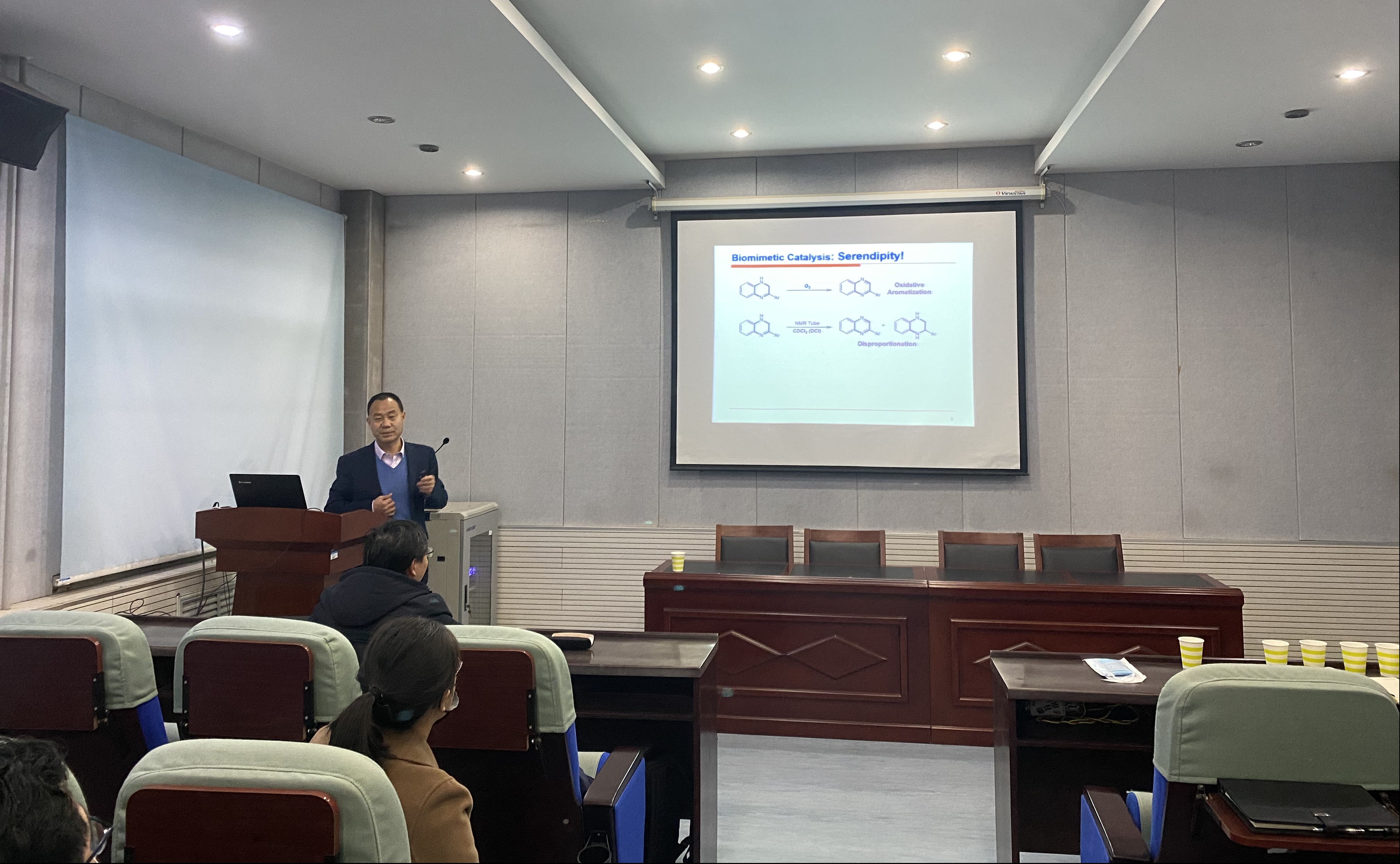 12月28日,应E8官网登录入口邀请,中国科公司大连化学物理研究所博士生导师、国家杰出青年科学基金获得者周永贵研究员到公司做学术交流。科研处处长刘澜涛、E8官网登录入口经理张银堂与周永贵研究员就人才培养、专业建设、学科发展、实验室建设等方面进行了深入的交流。接着,在睢阳校区化学实验楼三楼报告厅周永贵研究员作了题为《Biomimetic Asymmetric Reduction Based on NAD(P)H》的学术报告,E8官网登录入口相关专业师生听取了报告。