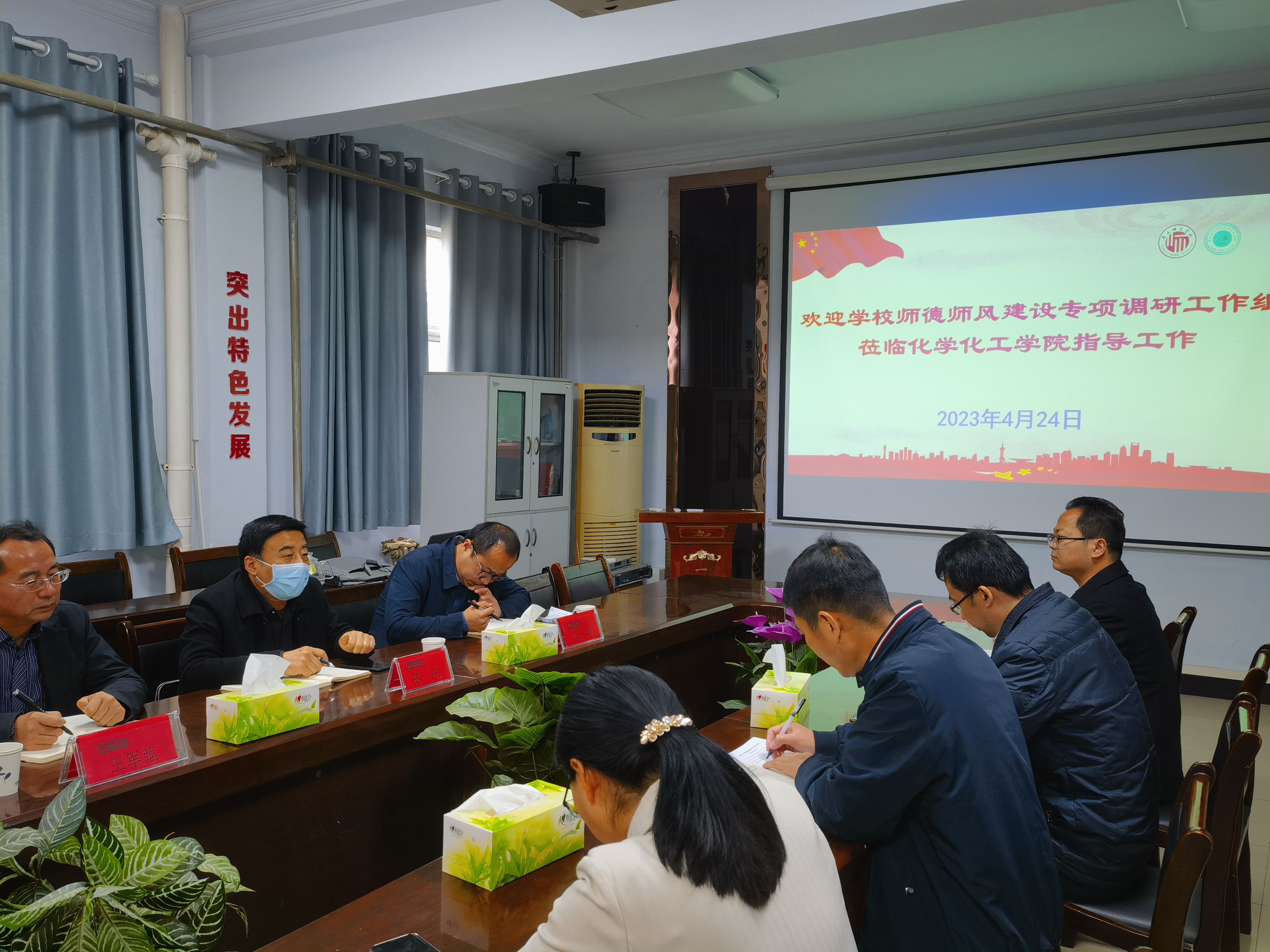 根据《公司关于开展师德师风建设专项调研工作的通知》精神,4月24日上午,公司师德师风建设专项调研工作组第一组组长、公司纪委副书记陈东带领师范生职业技能训练中心主任王军强、党校教育科科长李可刚到公司进行师德师风建设专项调研。公司班子成员参加调研座谈会,会议由专项调研组组长陈东主持。