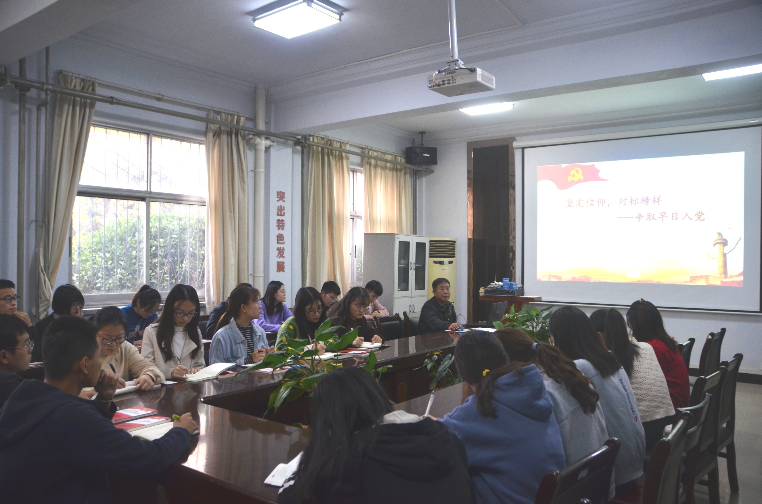 为了帮助入党积极分子深刻认识中国共产党,端正入党动机,明确奋斗目标,永远跟党走,争取早日加入中国共产党。10月18日下午在睢阳校区七号楼会议室,公司党总支书记韩忠民为第45期入党积极分子上了题为 “坚定信仰,对标榜样——争取早日入党”生动党课。全体入党积极分子中级学员参加。