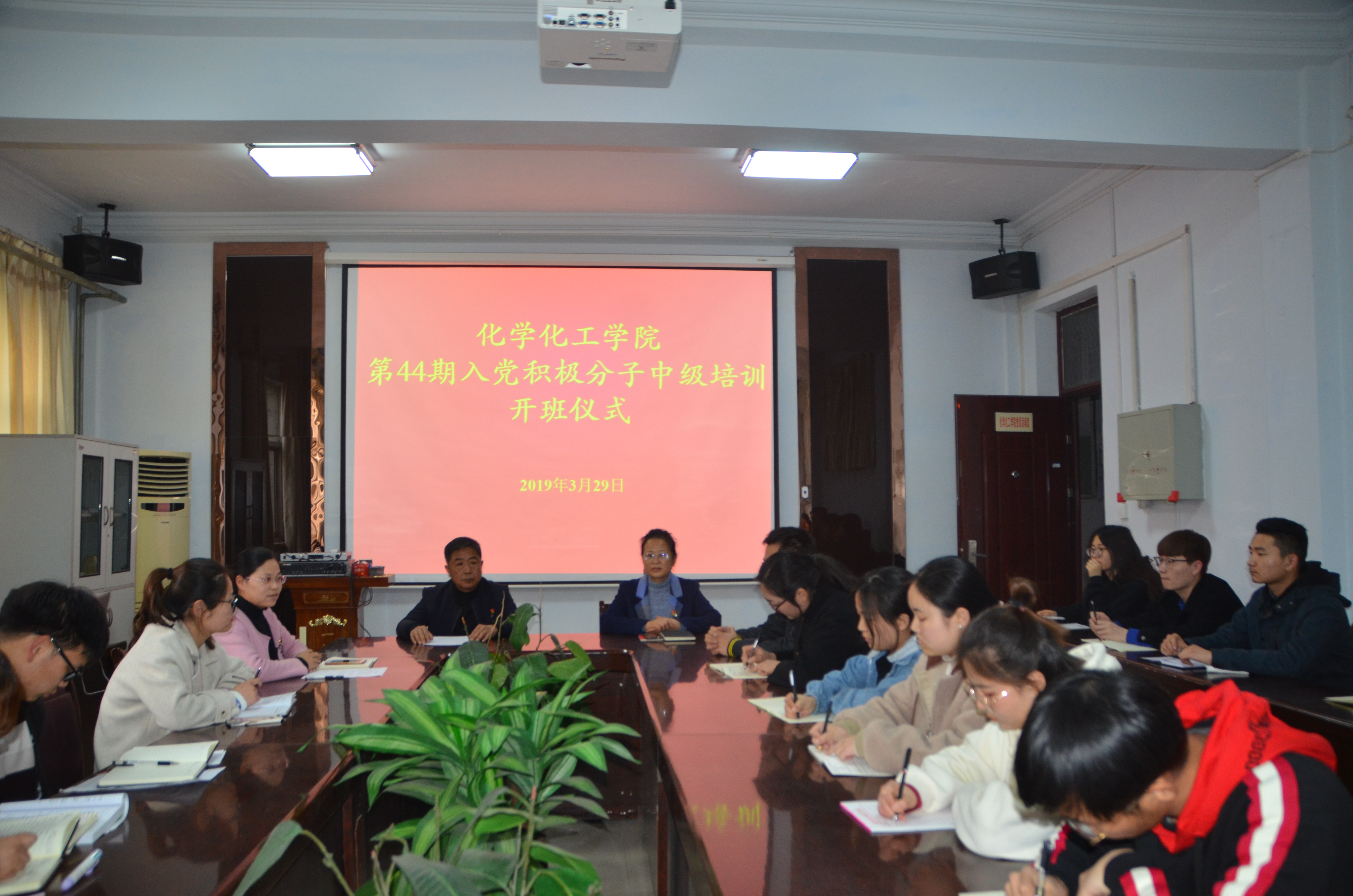 为迎接时代挑战,巩固党的执政地位,加强党的建设, 3月29日下午,E8官网登录入口于睢阳校区7号楼会议室举行了“第44期入党积极分子中级培训开班仪式”。党总支书记韩忠民,党总支副书记刘瑛,团总支书记李龙梅,17级辅导员郭家瑞,18级辅导员邵一方出席会议,入党积极分子中级学员参加。
