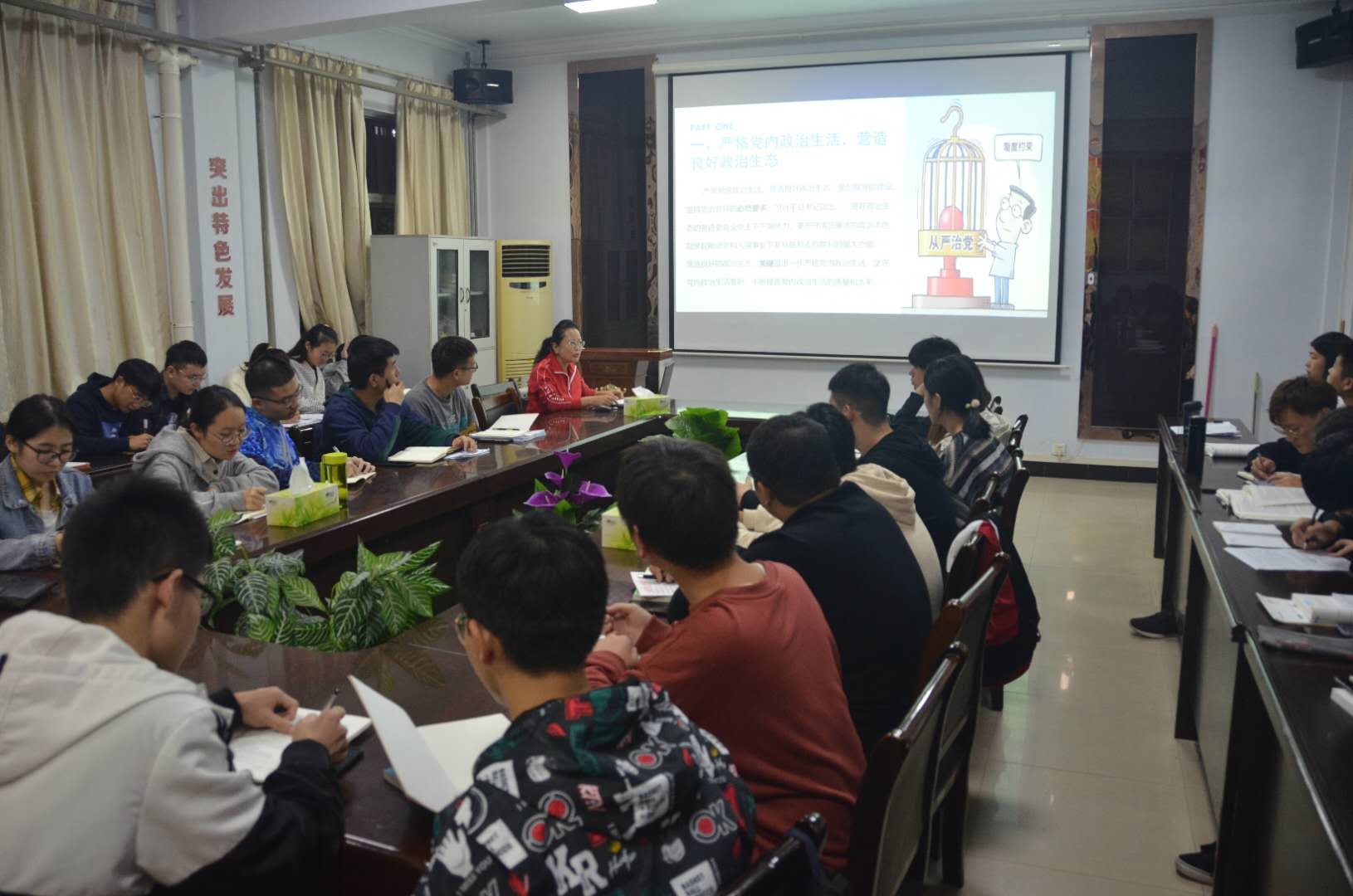 为了进一步提高入党积极分子的政治觉悟和政治能力,使其了解严肃党内政治生活的意义。2020年10月28日晚,公司党总支副书记刘瑛为第47期入党积极分子培训班(中级)学员上了专题党课:“旗帜鲜明讲政治:提高政治觉悟和政治能力”