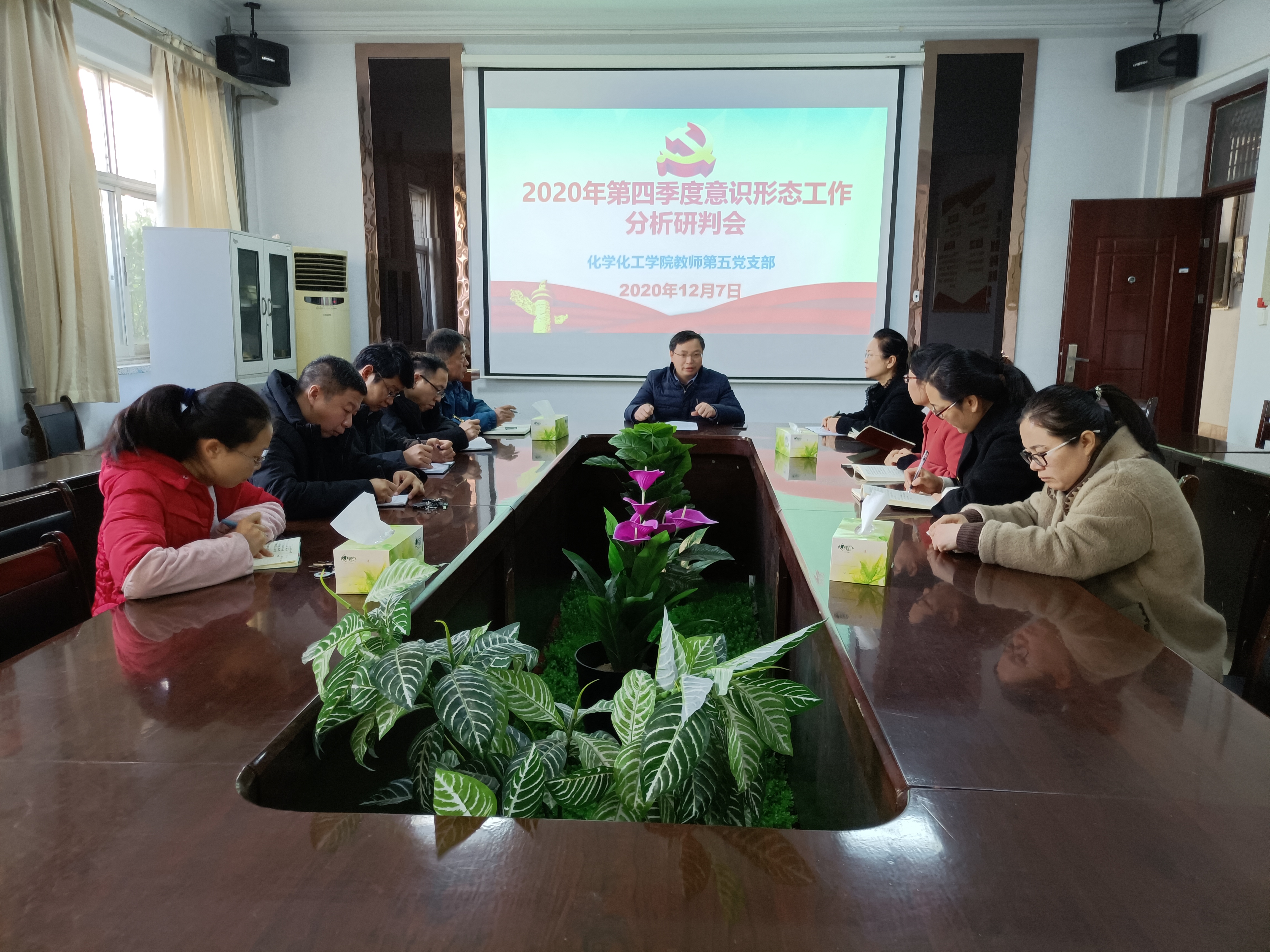 12月7日上午,E8官网登录入口教师第五党支部在公司议室召开了2020年第四季度意识形态工作研判会。支部书记刘澜涛主持,支部全体党员参加了会议。
