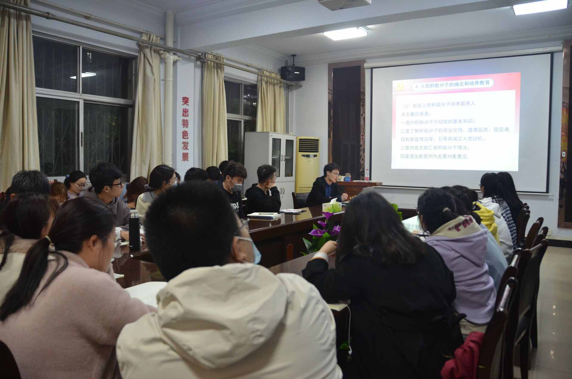 为确保发展的新党员标准高、质量好,能够适应新形势、新任务的要求。3月27日,E8官网登录入口于睢阳校区7号楼会议室举行“规范党员发展程序,科学做好党员发展”入党积极分子党课培训。本次培训由员工第三党支部书记史展主讲,全体入党积极分子参加。