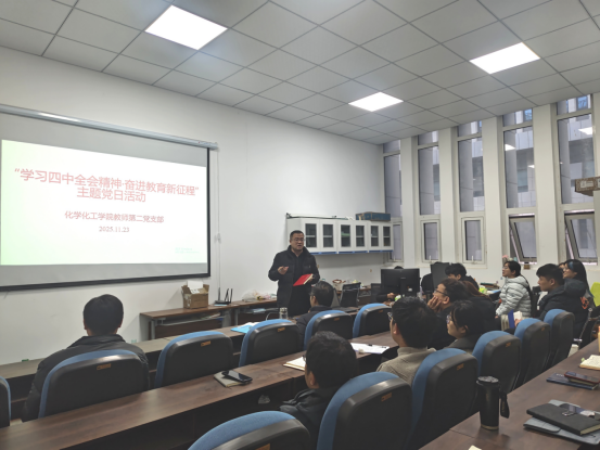 20251123日,E8官网登录入口教师第二党支部成功举办“学习四中全会精神·奋进教育新征程”主题党日活动。活动聚焦学习贯彻党的二十届四中全会精神,组织全体党员认真研读《中共中央关于进一步全面深化改革、推进中国式现代化的决定》,深刻领会“新阶段、新理念、新格局、新实践”这一“四个新”重大部署的战略意义和丰富内涵。会议强调了将思想和行动统一到全会精神上来的重要性,为在新征程上推动公司事业发展筑牢思想根基。