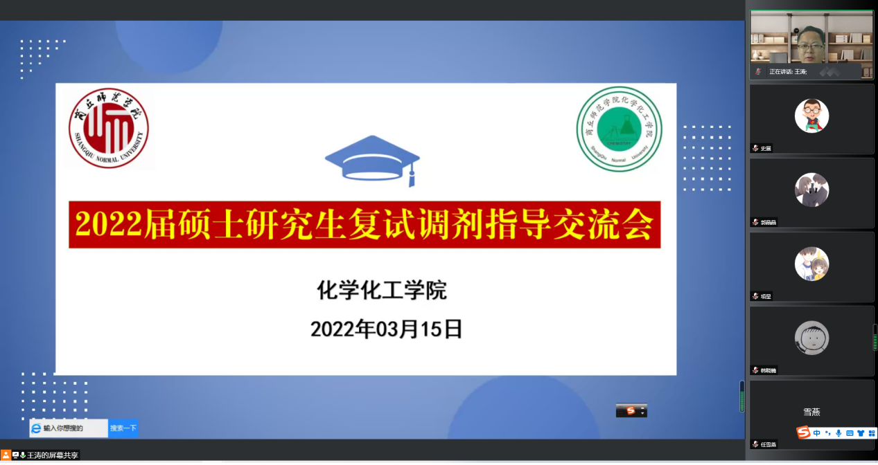 首先王涛对同学们考研初试的努力给予肯定,并对通过国家线的同学表示祝贺。接着对今年考研形势进行了分析,并从复试的主要内容和形式、复试中的注意事项以及调剂时需要注意的问题等几个方面给大家进行了解读。随后,辅导员、班主任老师结合自身经历和目前了解到的情况分别从如何准备个人简历、如何联系导师、面试调剂过程中需要注意的事项等方面与同学们进行了深入交流。希望同学们能够充分利用各方面资源,拓宽信息渠道,把握机会,成功上岸。