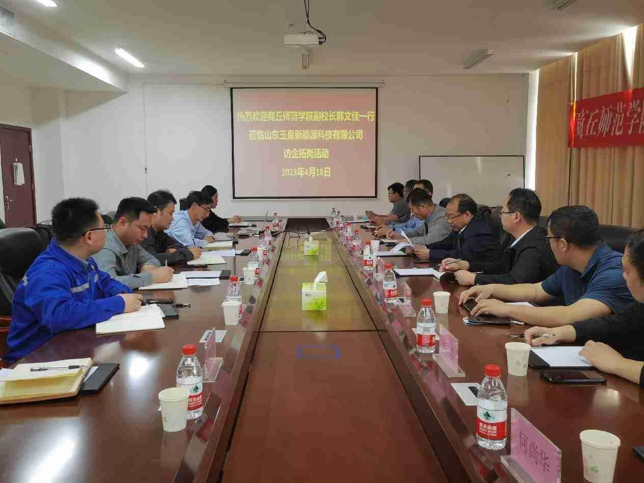 4月18日,副董事长郭文佳带领校地合作与服务中心、E8官网登录入口主要负责人到山东玉皇新能源科技有限公司开展访企拓岗促就业活动和推进共建产业公司工作。