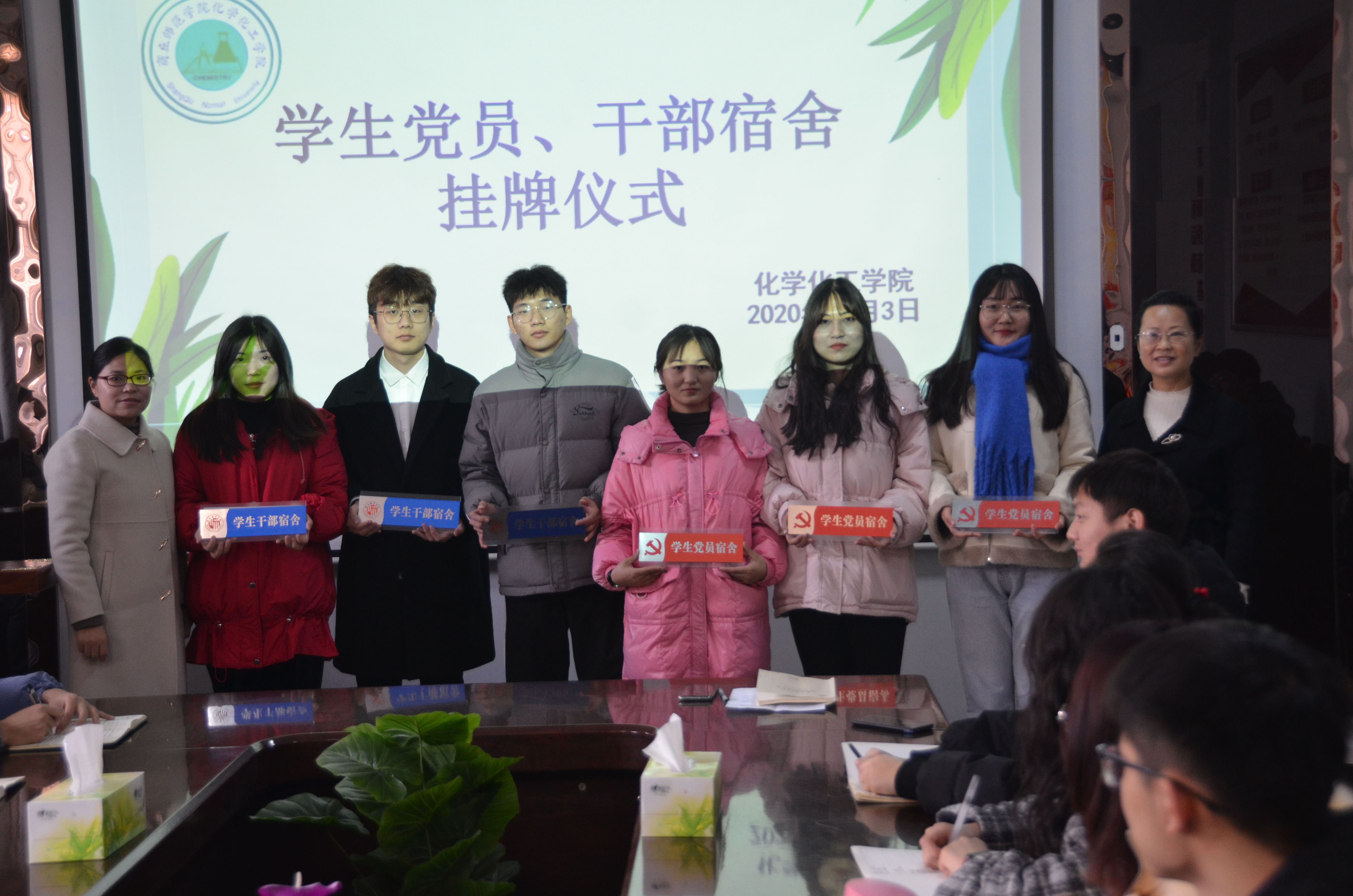 充分发挥员工党员、员工干部的先锋模范作用和先进典型的带动示范作用,进一步牢固树立党员意识,时刻铭记党员、干部身份,促进宿舍环境提升,2020年12月3日中午,E8官网登录入口于睢阳校区7号楼会议室举行员工党员、员工干部宿舍挂牌仪式。本次会议由党总支副书记刘瑛,团总支副书记郭家瑞出席,员工党员、员工干部代表及员工会各部门成员参加。
