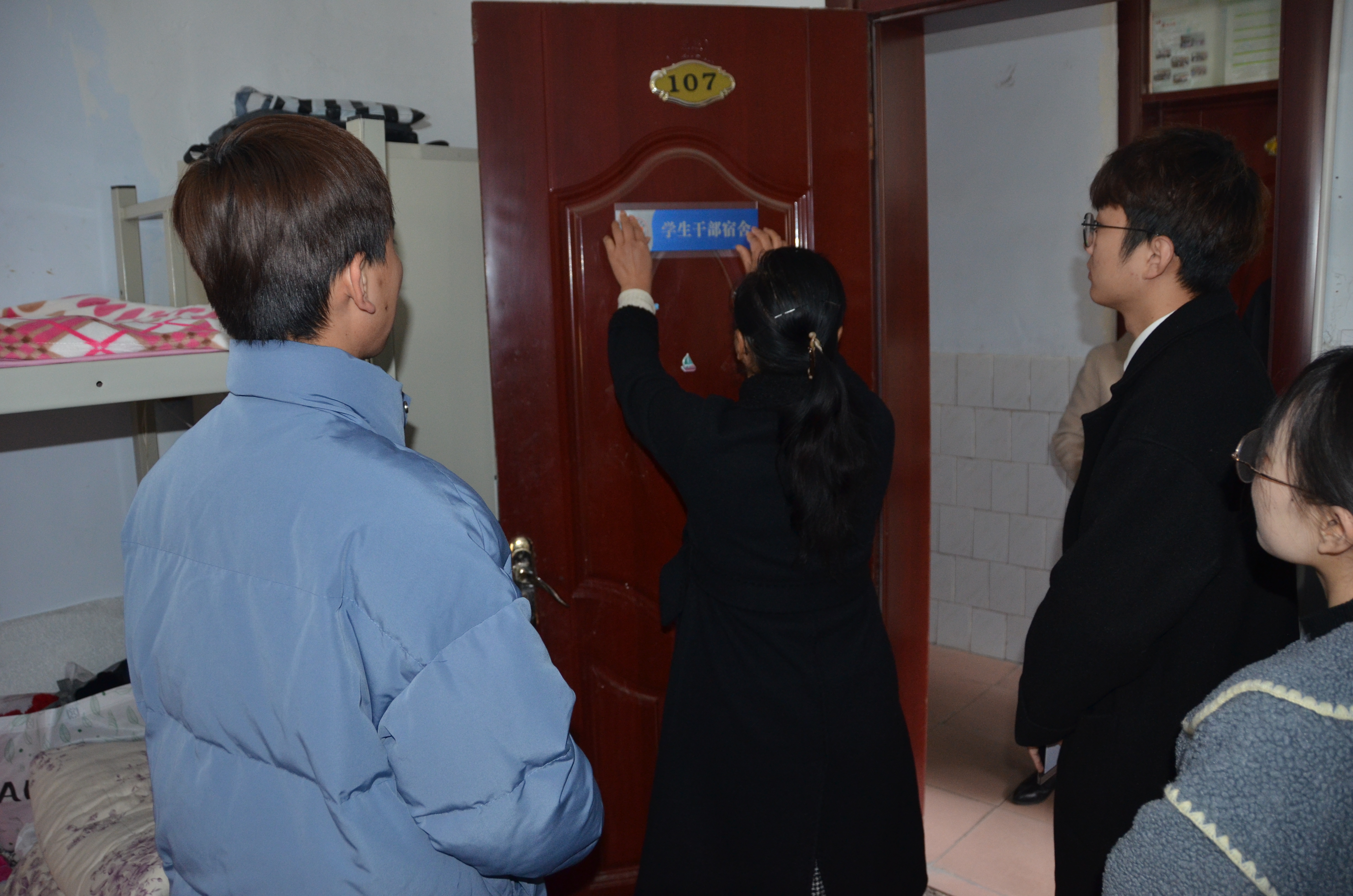 会后,刘瑛和郭家瑞前往员工党员、员工干部宿舍慰问,询问了他们的工作、学习、生活情况,为宿舍挂上员工党员,干部门牌。希望他们继续以饱满热情的态度服务每一位同学,为同学们做表率。