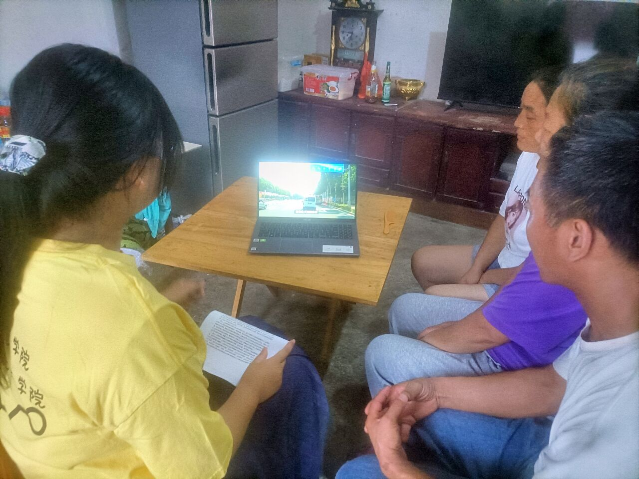 08月05日,实践活动第四天,团队成员借用PPT和视频向当地居民讲解消防安全知识及暑期安全教育,借此普及当地老人们的社会治理相关知识。在活动的前一周成员查找相关资料制作PPT并事先寻找好相关视频,在活动当天深入居民家中为其讲解相关常识。成员们从老人的生活琐事中学了解具体情况,运用所学知识,给予老人巨大帮助。