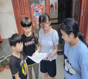 08月07日,实践活动第五天,团队成员在自己的家乡借用一份暑假安全通知书向安全意识薄弱的儿童宣传基础的暑假安全知识,成员着重针对当地暑期赋闲在家的中小员工,向其强调防溺水、防用电事故、防疫情传播。成员的再三强调让更多的孩子们了解了暑假安全知识和保护环境的重要性。