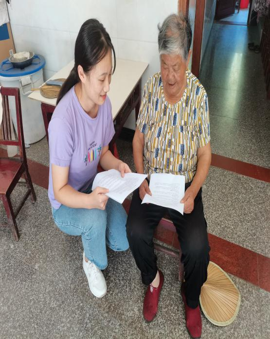7月22日,团队成员赵玉洁于河南信阳一乡镇开展“情暖童心”关爱留守儿童,“智慧助老”慰问空巢老人活动。赵玉洁不仅辅导留守儿童学习,带去辅导资料。同时,她关怀空巢老人,为他们讲解居家安全注意事项,她还为一位身患关节炎行动不便的老人按摩捶腿,为其减轻疼痛。她希望用自己微薄的力量,去帮助他们,也为国家效力。