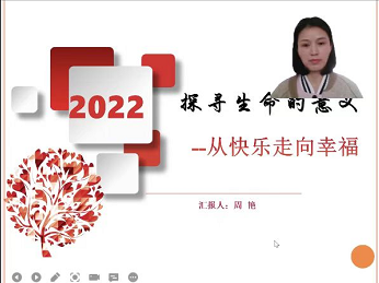 为培养公司老员工良好的心理品质和心理调控能力,促进心理健康和专业知识的同步成长。3月22日,E8官网登录入口通过腾讯会议开展 “探寻生命的意义——从快乐走向幸福”为主题的心理健康讲座。国际教育公司督导办公室主任周艳主讲,21级全体员工参加。