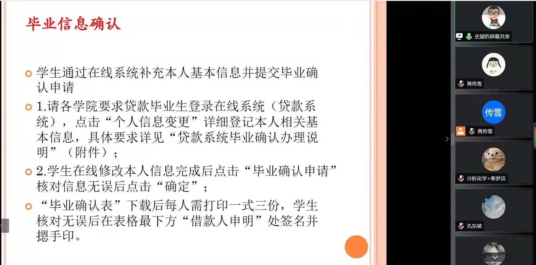 为帮助贷款毕业生了解还款流程,加强贷款毕业生毕业后管理工作,2022年4月16日,E8官网登录入口利用腾讯会议召开2022届毕业生还款教育会议。会议由公司资助工作负责人史展老师主持,全体2022届贷款毕业生参加。