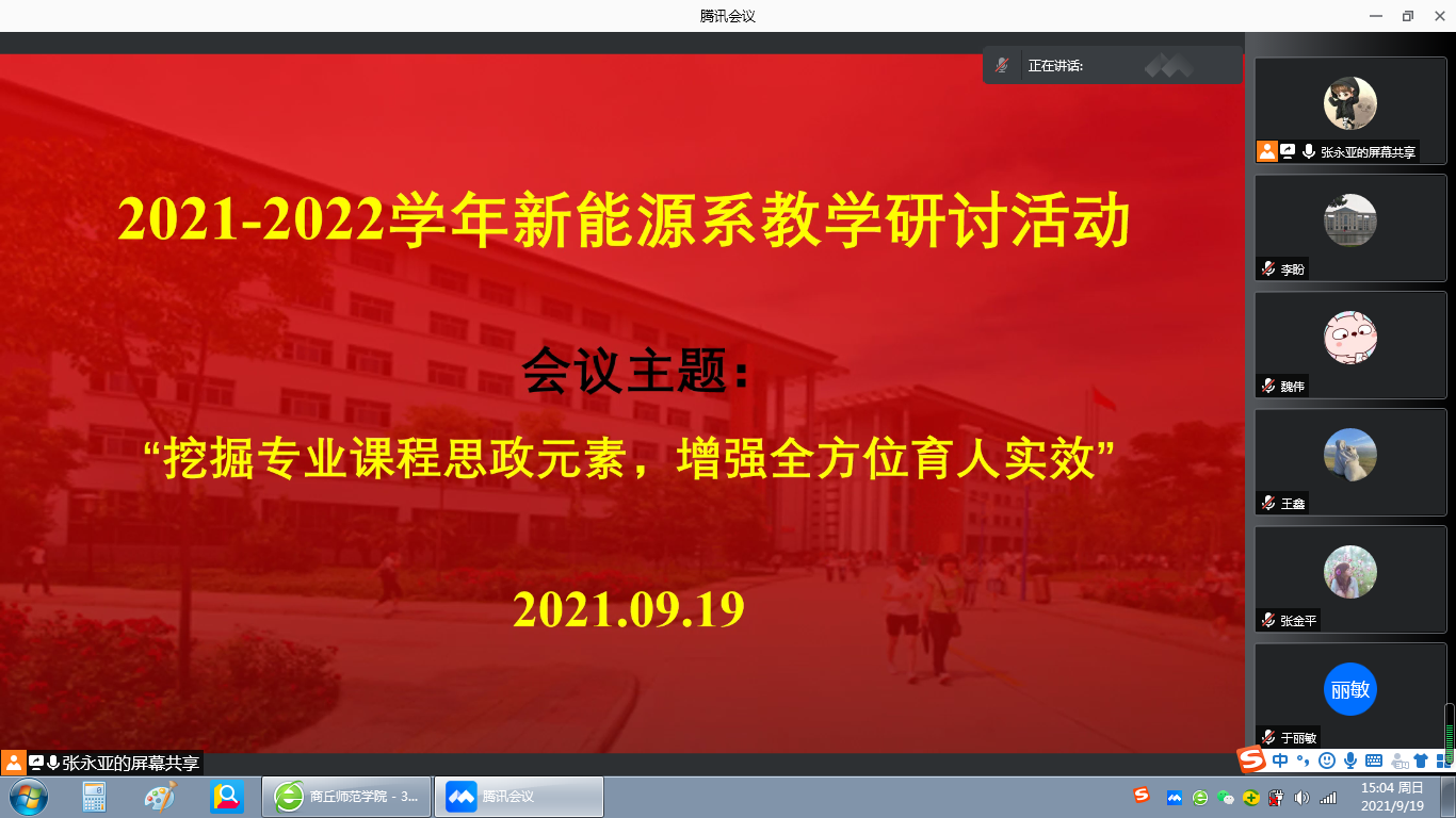 9月19日下午,E8官网登录入口新能源系召开了以“挖掘专业课程思政元素,增强全方位育人实效”为主题的教研活动。会议由系主任魏伟老师主持,新能源系全体教师参加了此次活动。