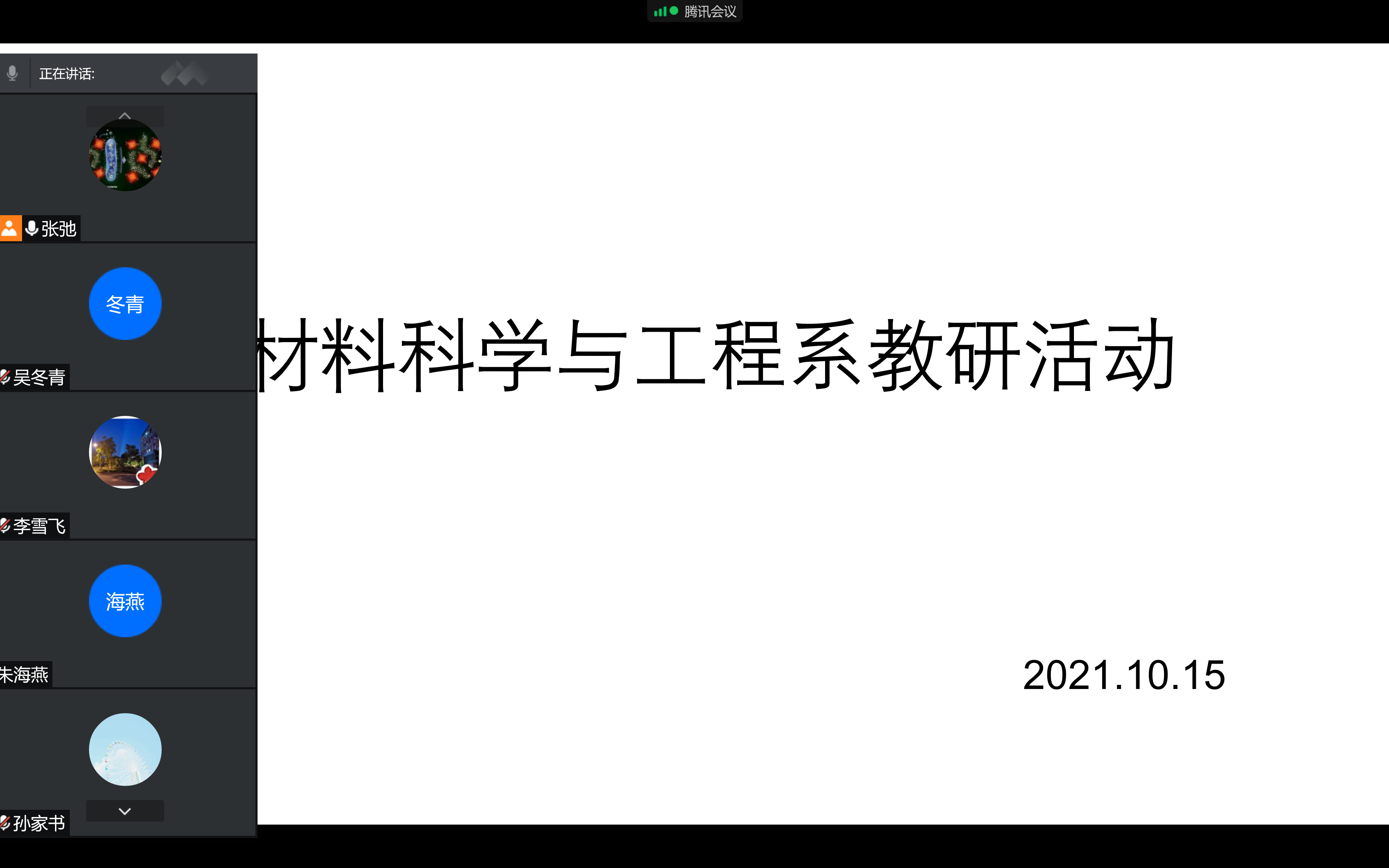 10月15日,E8官网登录入口材料系利用腾讯会议在线召开了“如何在专业课程中有机融入思政元素”主题教研活动。教研活动由系主任张弛主持,材料系全体老师参加了此次活动。