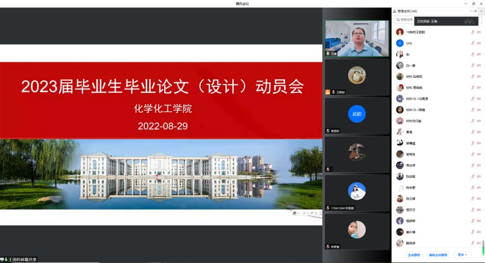 会上,王涛介绍了2023届本科毕业生毕业论文(设计)的总体要求和进度安排,对员工毕业论文的过程管理进行了详细说明,并强调毕业论文是本科人才培养的重要环节,是掌握专业基础知识后的系统性、综合性科研训练活动,是本科阶段学习的最后总结和升华,要求同学们务必认真对待,坚守科研诚信,及时主动与指导老师联系,保质保量完成毕业论文(设计)。