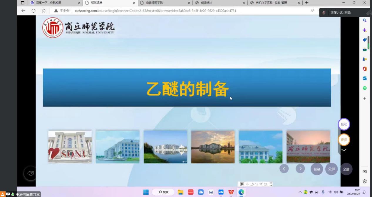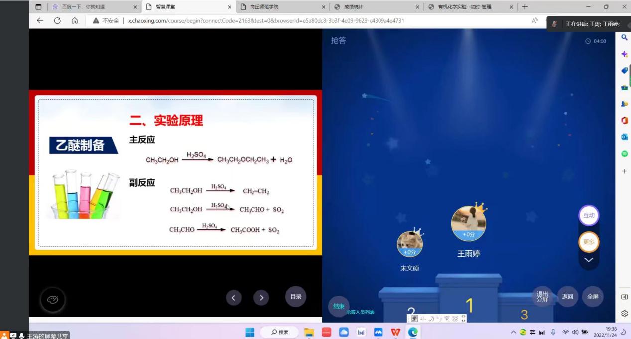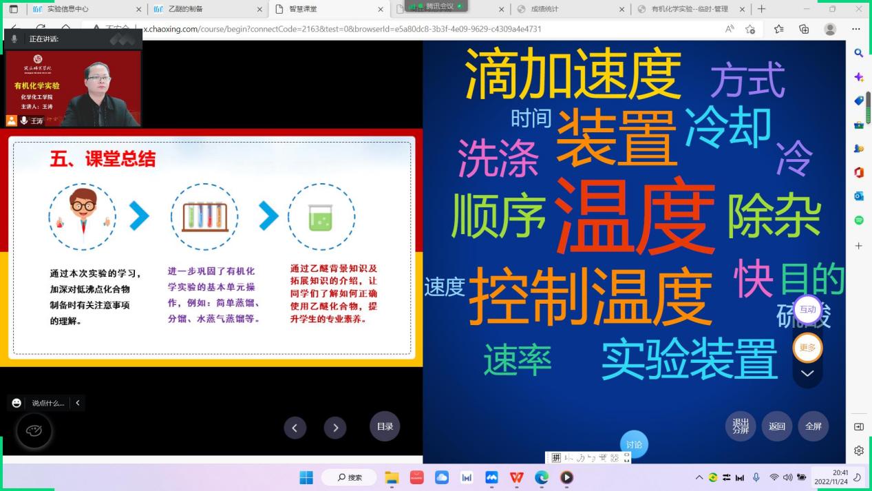 11月24日晚第9节,E8官网登录入口王涛老师的《有机化学实验》课程教学范式改革公开课通过腾讯会议如期进行。院督导团成员臧运波,近两年新进青年教师以及课程组老师进行了线上课堂观摩。