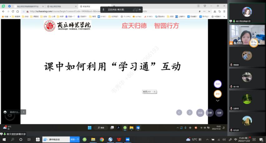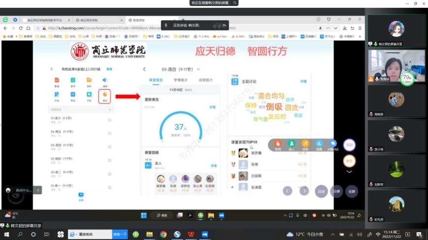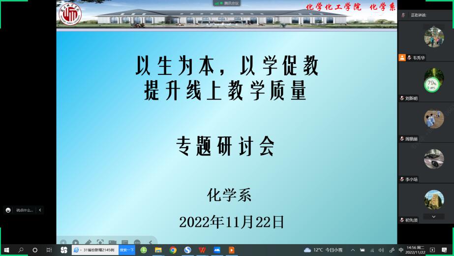 为让在线教学不打折扣,保质保量完成本学期教学任务,11月22日下午,化学系全体教师通过腾讯会议召开了“以生为本,以学促教”提升线上教学质量为主题的研讨交流活动,本次活动由系主任韦秀华主持。