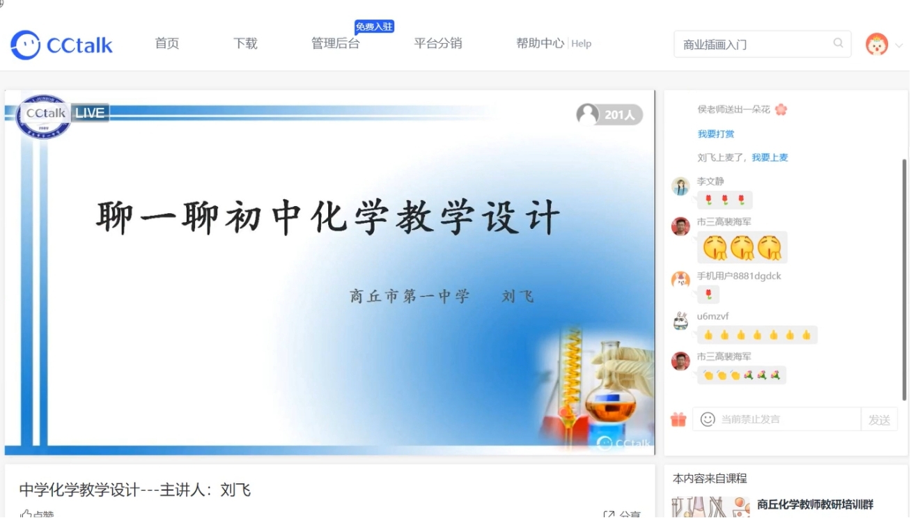 为了提升师范生的教学设计能力,E8官网登录入口于12月2日晚通过CCtalk平台举办了“互联网+”师范生成长工作坊教学设计专题讲座。副经理王涛,校内指导老师韦秀华、张南,17位工作坊坊主以及2020级化学(师范)专业全体学员参加了本次活动。