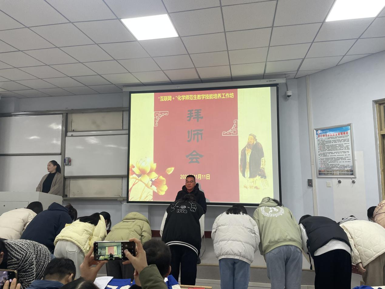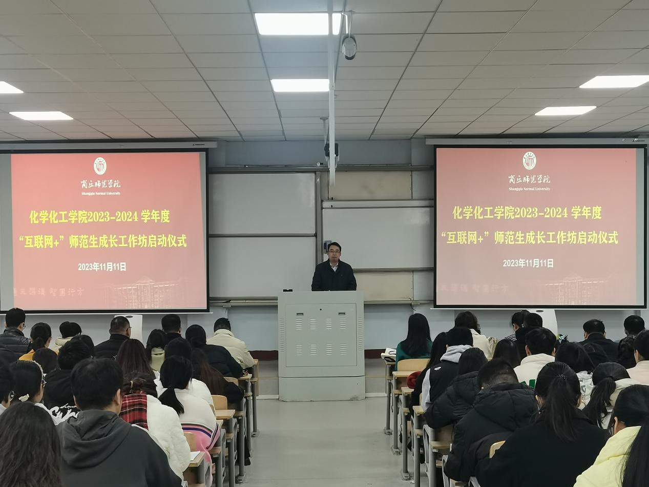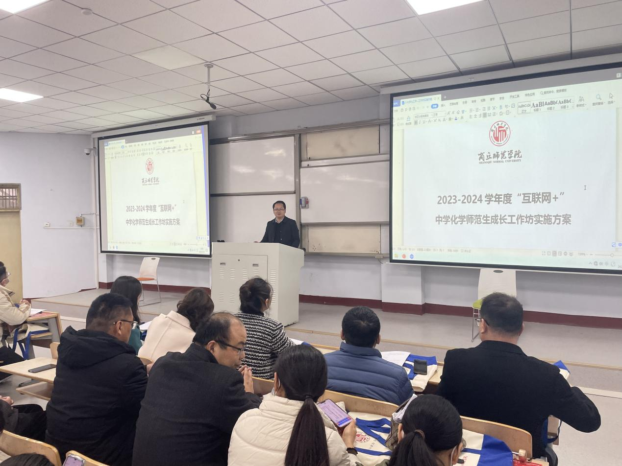 王涛宣读了2023-2024学年“互联网+”中学化学师范生成长工作坊工作实施方案,对各位工作坊坊主百忙之中参与此项活动表示感谢,同时向工作坊学员提出了具体要求,希望同学们早日成为合格的未来教师。