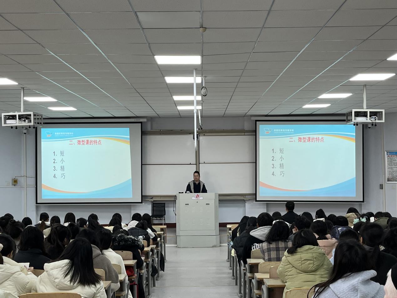 接着吕帅老师进行了《如何上好微型课》的专题讲座。吕老师从什么是微型课,微型课的特点,微型课与说课、微课的区别,如何讲好微型课,微型课要注意的细节等方面进行阐述。并通过播放往年优秀微型课教学案例视频,与同学们一起分析案例中的亮点和不足,加深员工对微型课讲课技巧的理解。