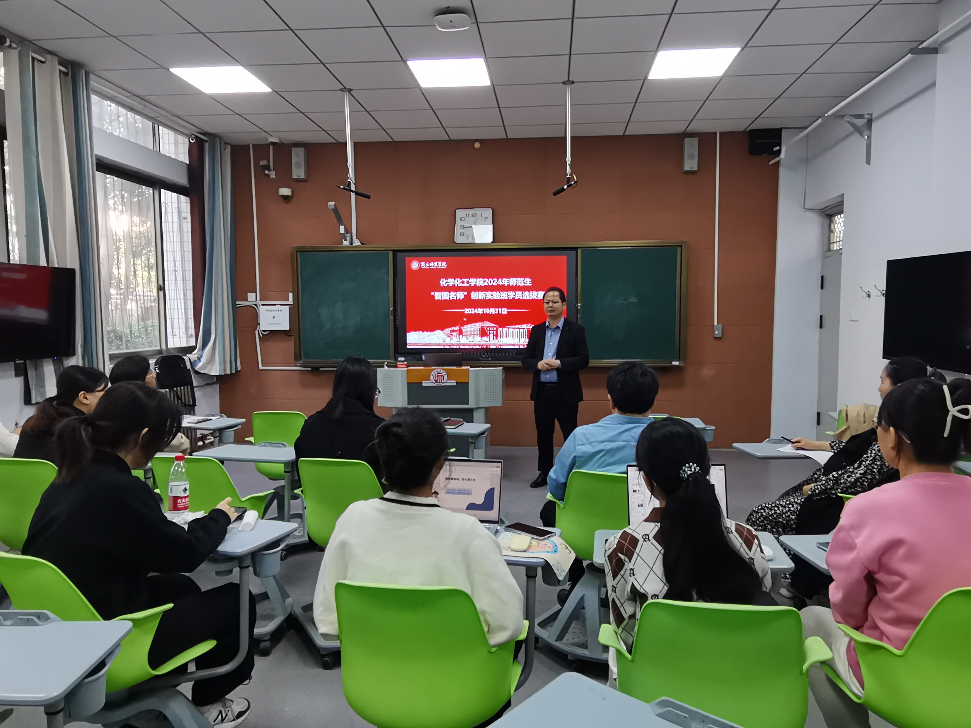 2024年10月31日,公司在睢阳校区1号楼111教室顺利举办了2024年师范生“智圆名师”创新实验班学员选拔赛。副经理王涛、化学系主任董辉及专家评委亲临现场指导。