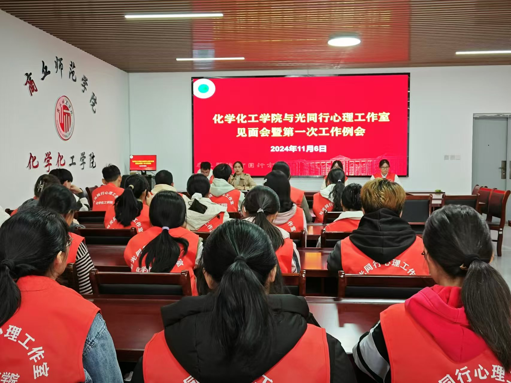 在热烈的掌声中,与光同行心理工作室见面会暨第一次例会圆满结束。这次会议为工作室全体成员指明了努力的方向,同时也激发了成员们工作的热情和激情,增强了团队的凝聚力和战斗力。