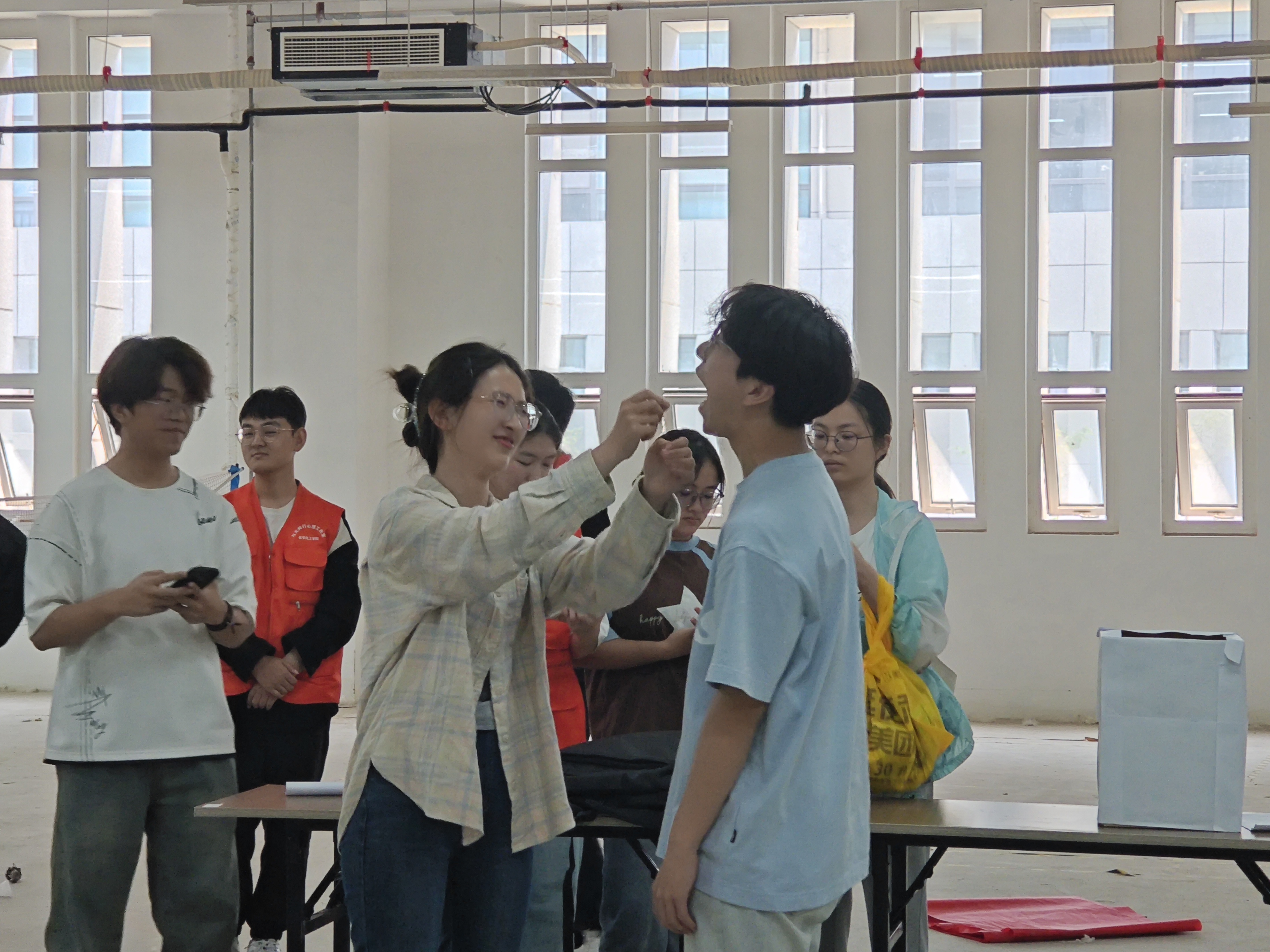 5月23日,E8官网登录入口“与光同行”心理工作室面向22级、23级、24级班级心理委员及全体工作室成员,在工科实训大楼一楼大厅开展“身心健康 赋能成长”心理素质拓展活动。本次活动主要分为三个环节,分别是:珠行万里(协作中构建信任)、你做我猜(非语言沟通的突破)、心灵盲盒(匿名互助中的心灵共鸣)。