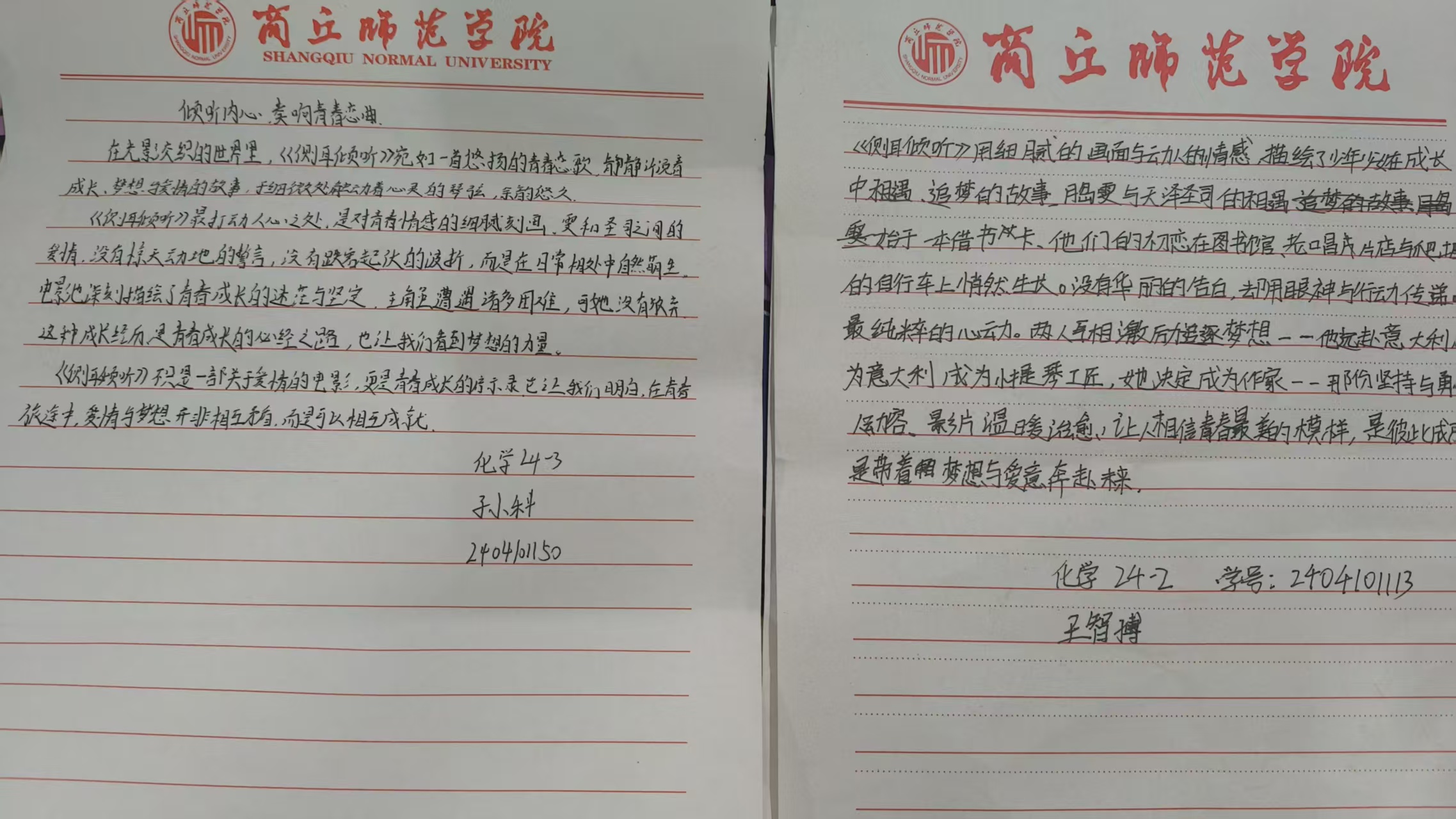 观影结束后,同学们积极写下自己的观影感悟,将影片中触动人心的情节与自身思考化为文字记录。此次活动不仅为同学们带来了治愈的视听体验,更通过电影引发对成长、梦想与情感的深入思考,进一步推动了校园心理健康文化的传播与交流。